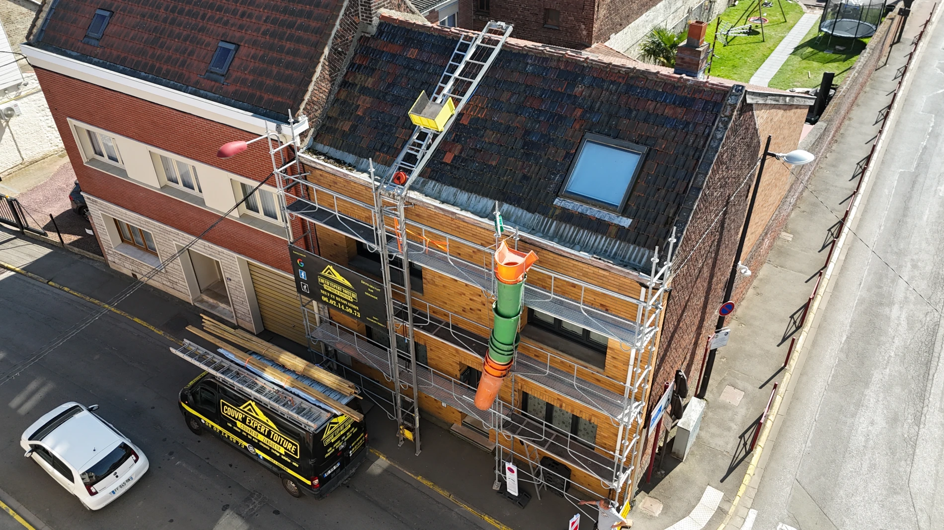 Nous habillons et isolons vos façades avec une large gamme de matériaux : zinc, ardoise, tuile, bois, PVC ou fibre-ciment.