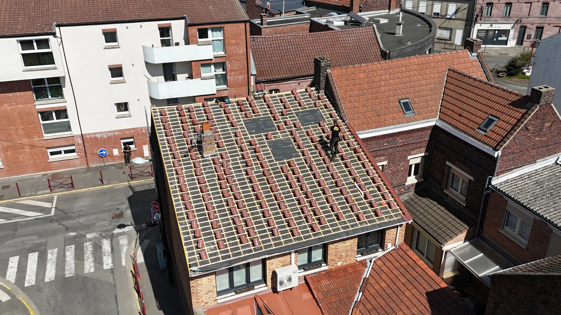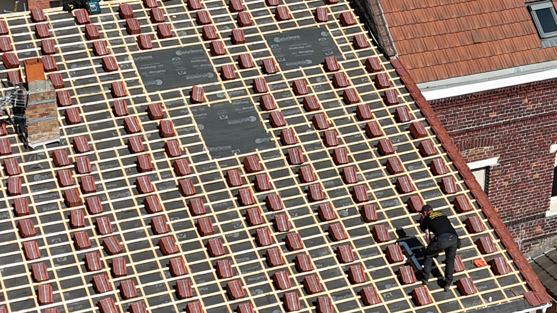 Pose de couverture en tuile monopole rouge