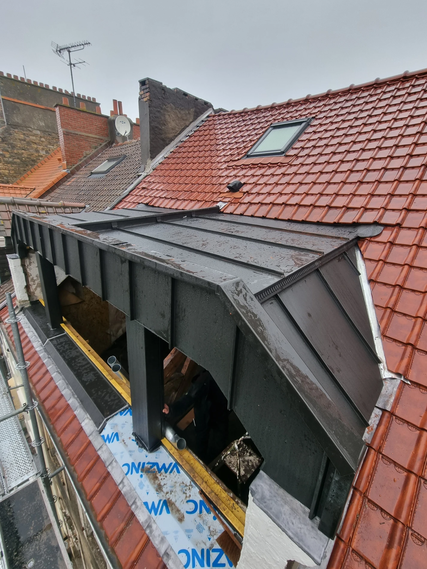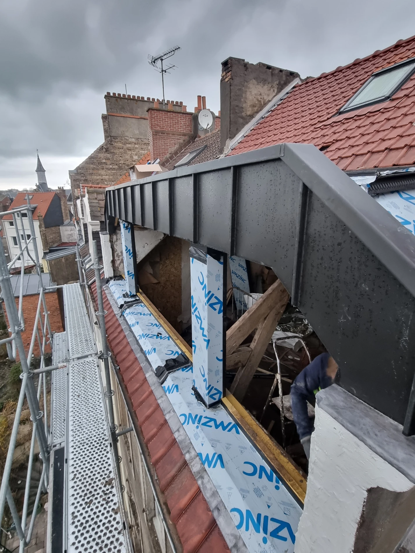 Spécialistes du zinc, nous réalisons des toitures complètes, ainsi que la pose de tous les éléments de zinguerie essentiels comme les gouttières, les descentes de toit et les chéneaux.